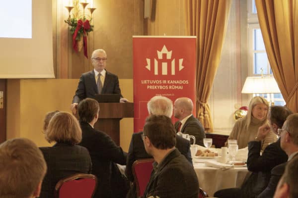 The Ambassador of Canada Kevin Rex emphasized the strong increase in trade between Lithuania and Canada since 2017, when the Canada-European Union Comprehensive and Economic Trade Agreement (CETA) partially entered into force, and expressed his gratitude to the Canadian Chamber of Commerce for organizing such an event within a few months since its founding.